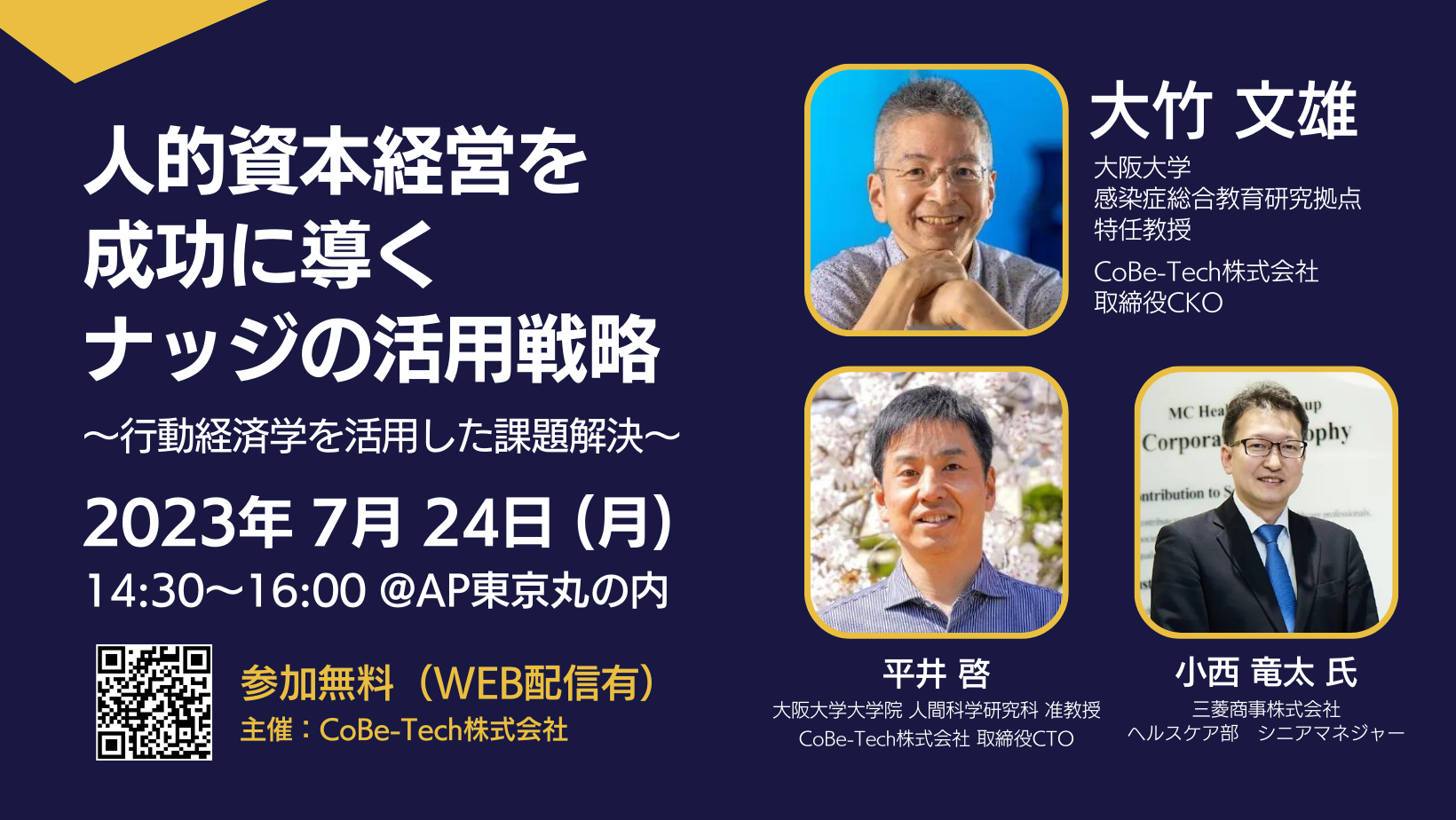 大阪大学発ベンチャーのCoBe-Tech株式会社「人的資本経営を成功に導くナッジの活用戦略:行動経済学を活用した企業課題解決」セミナーを7月24日に開催