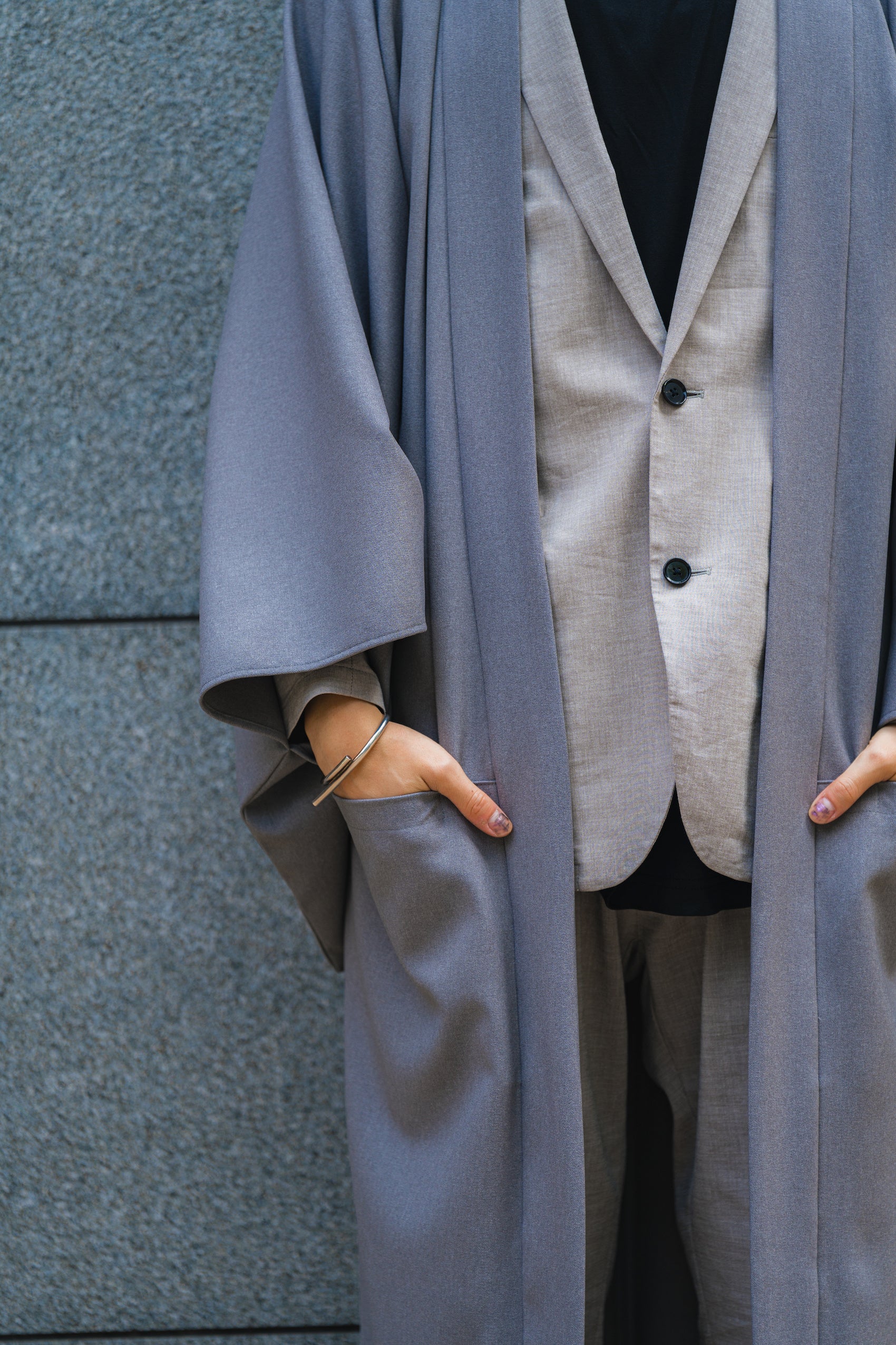 やわらかな風合いが特徴で、着物の直線的な魅力が伝わりやすいスーツ生地を採用しております。