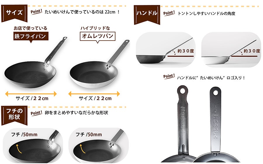 株式会社タマハシは新潟県燕市にて昭和38年に創業し、現在60周年を目前に控えています。創業以来「より速く、より確実に」をモットーに行動し、現在に至ります。様々なジャンルのオリジナル商品を企画・開発し、またお客様のOEMも多く手がけ、信頼と実績を積み重ねてまいりました。今回の「たいめいけん」新フライパンシリーズでは「たいめいけん」で実際に使用されているフライパンを元に企画し、プロのこだわりと家庭での使いやすさを最大限に引き出せたと思っております。使っていただける方々が料理をより楽しんでもらえるようにと思い今回のプロジェクトを実行致しました。