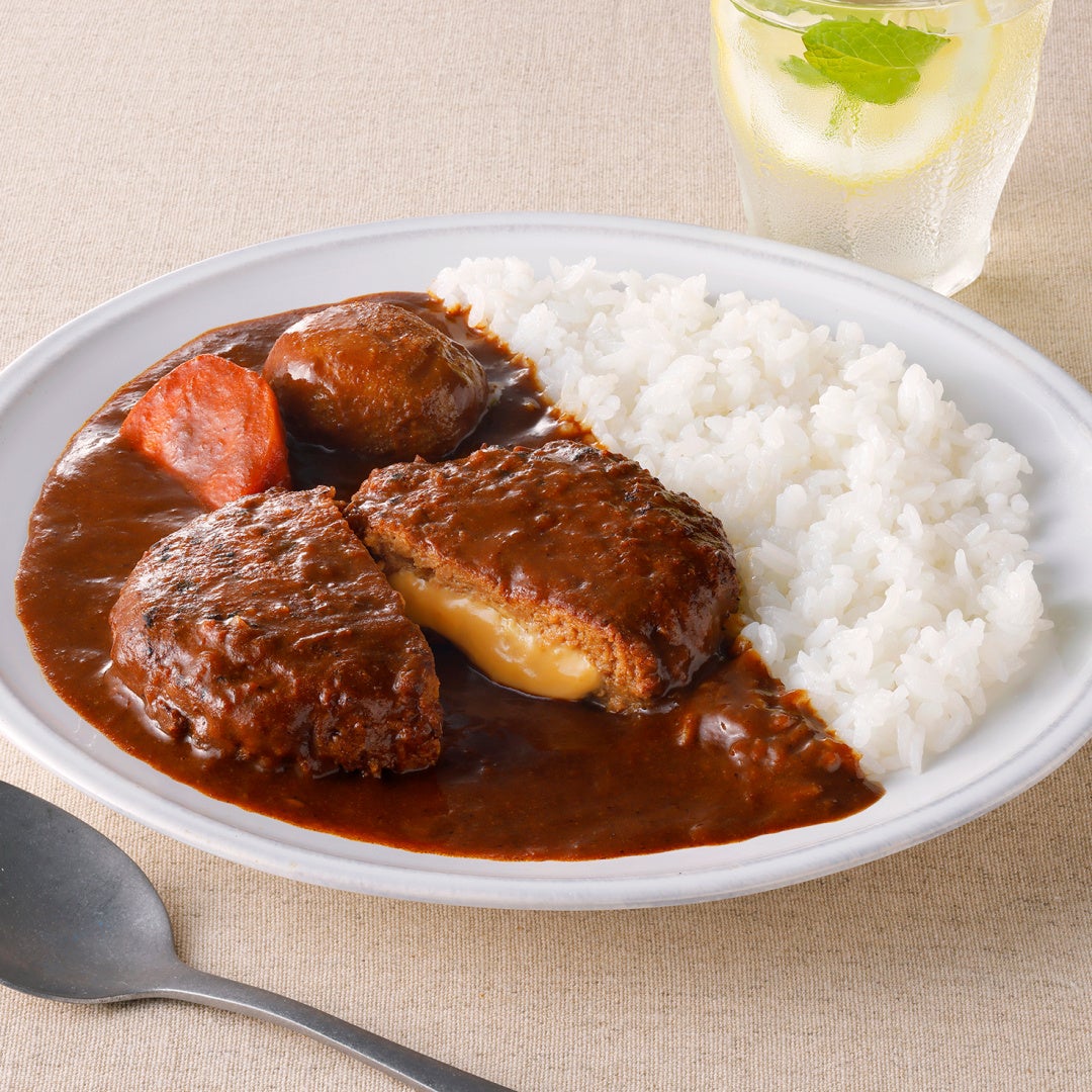 「北海道発厚切りビーフカレー」は厚切りの牛肉、「北海道発チーズインハンバーグカレー」はチーズソース入りハンバーグが贅沢にゴロっと入っており、さらに大きくカットされた北海道産の皮付きじゃがいも、にんじんも入った濃厚な味わいのカレーです。