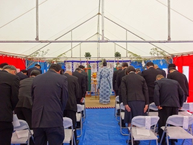 起工式には、吉岡比呂志代表取締役や中西代表理事組合長をはじめとする両社の関係者が参加し、工期中の安全と無事を祈願しました。