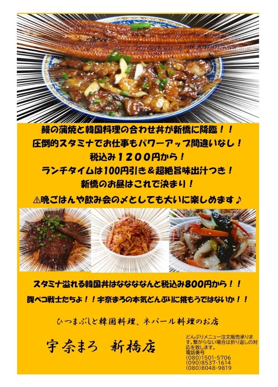 新名物【鰻蒲焼きと韓国料理の合わせ丼】が誕生しました。