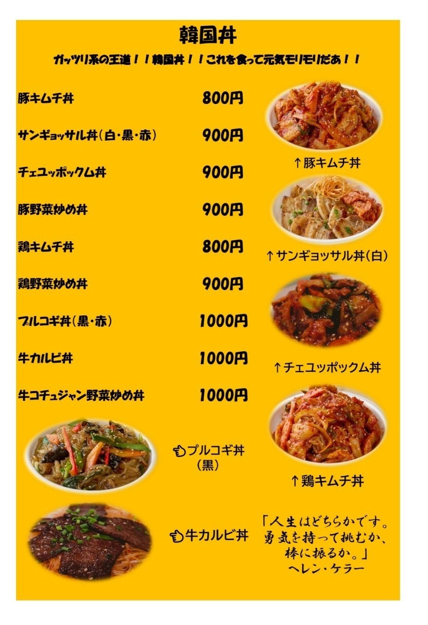 ●韓国料理単体の丼(ランチ時 コムタン付) 800円〜
