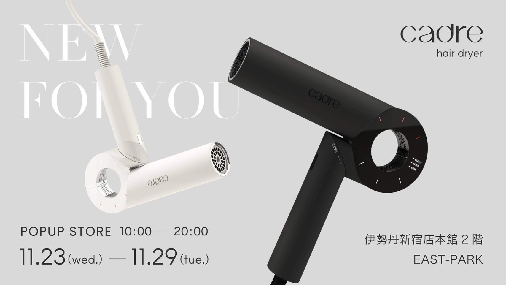 より快適な「新しい」を提供する総合家電メーカー『cadre(カドレ)』は、2022年11月23日(水)〜2022年11月29日(火)まで、伊勢丹新宿店 本館2階 イーストパーク/アイテムプロモーションスペースにて、期間限定ポップアップショップを開催致します。ポップアップショップは、今回が初めての開催となります。