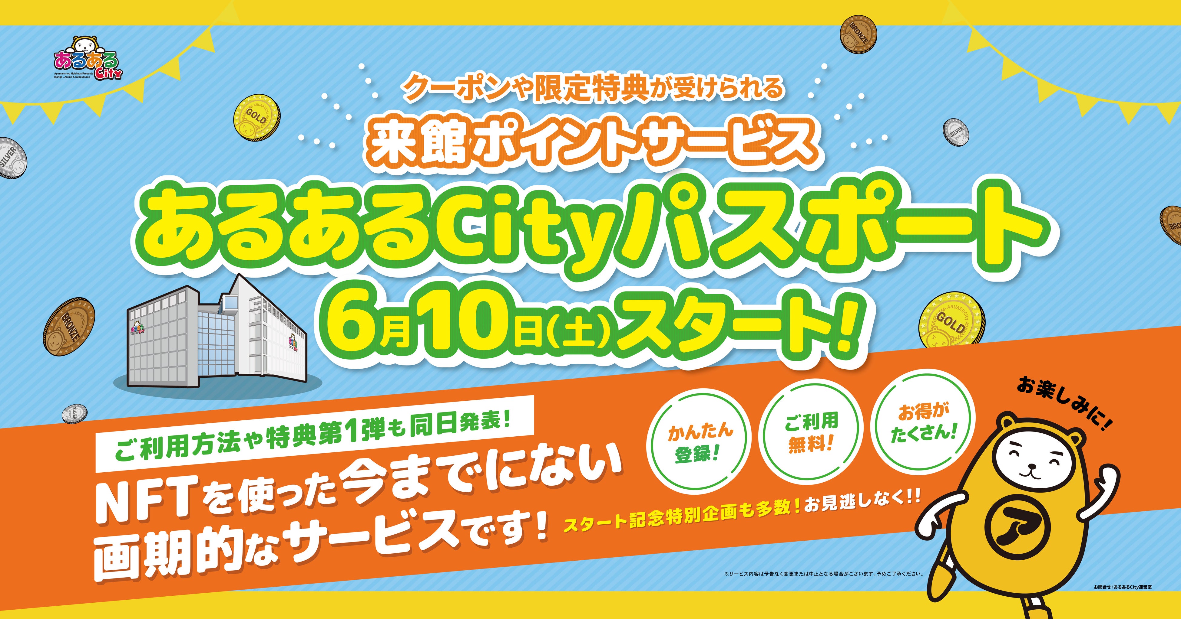 尚、「あるあるCityパスポート」の入手・利用方法・特典などの詳細は、6月10日(土)11:00に、あるあるCityの公式ホームページ上にて発表いたします。