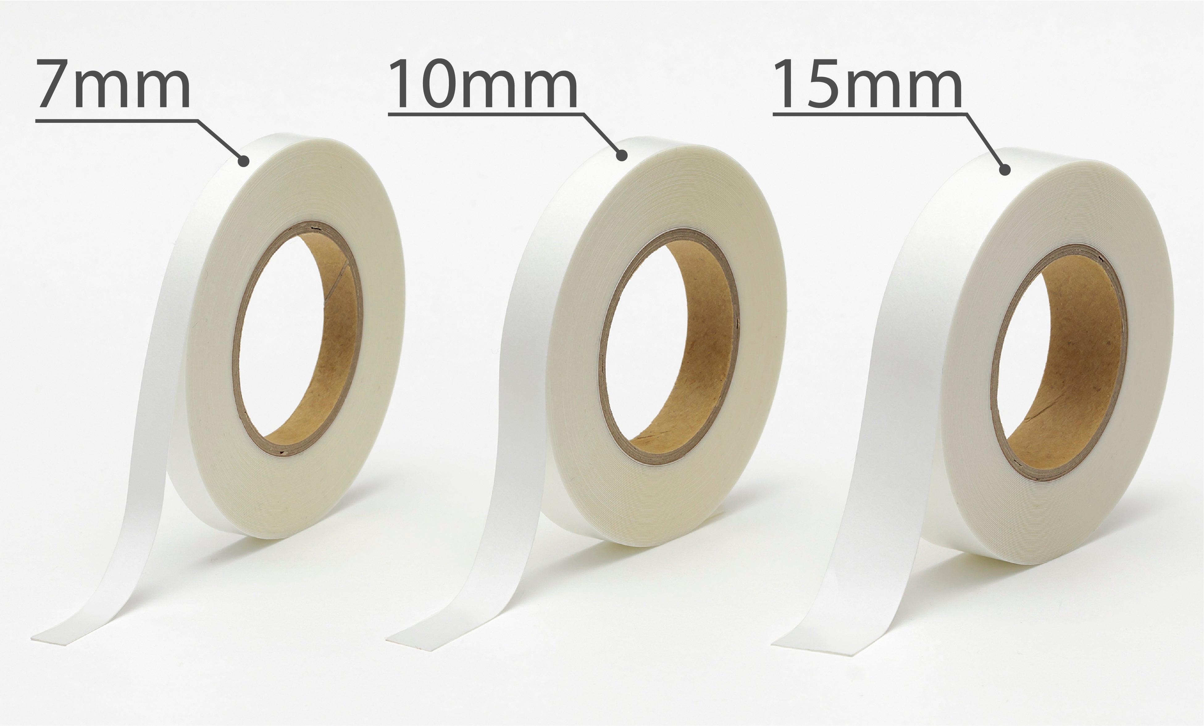 (正)布用両面テープとして強力な接着力がある上に、 テープに粘着剤が付いているためアイロンを使わずに仮接着することができます。