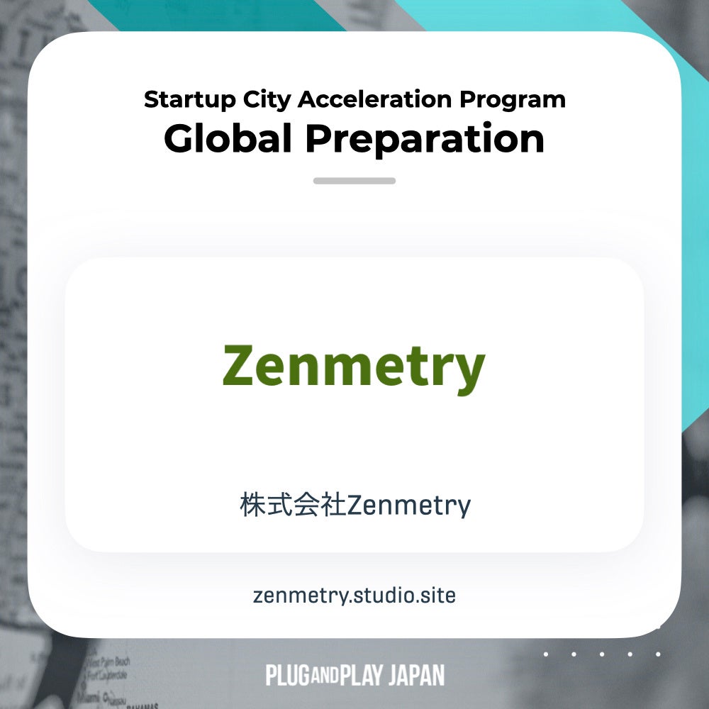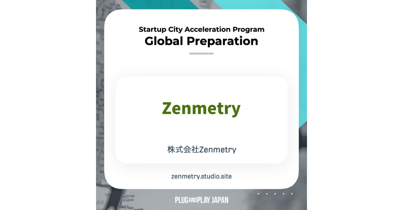 本スタートアップ支援プログラムは、JETROが世界トップレベルのアクセラレーター/ベンチャーキャピタル5社と共同して行う、スタートアップ支援の一貫です。ゼンメトリー社が採択された「Global Preparationコース」は、Plug and Play Tech Centor の日本法人であるPlug and Play Japanが、海外進出を狙うスタートアップを対象に支援するアクセラレーションプログラムになります。
