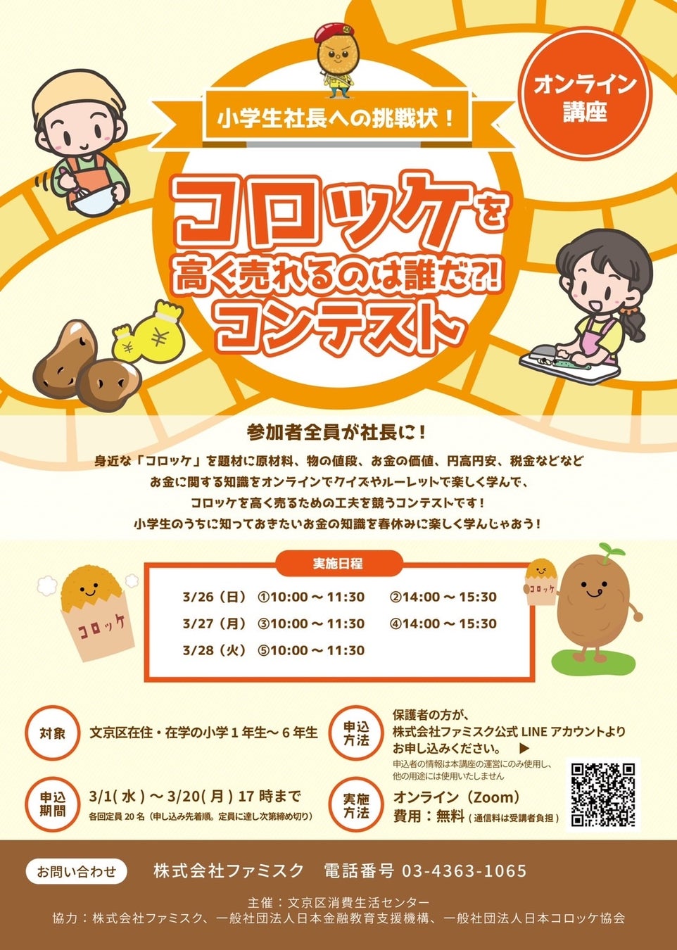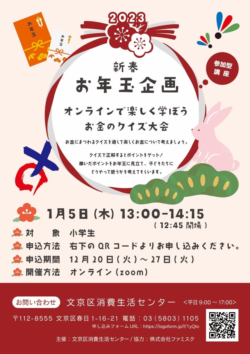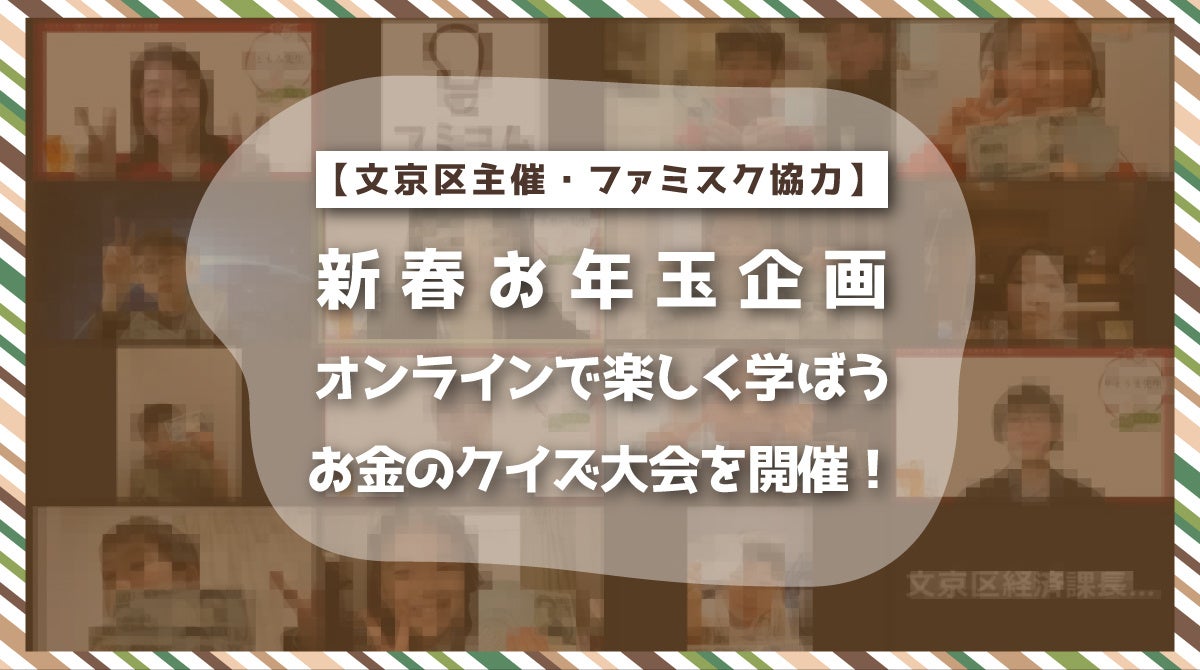 【文京区主催・ファミスク協力】1月5日(木)に、新春お年玉企画 オンラインで楽しく学ぼうお金のクイズ大会を開催!