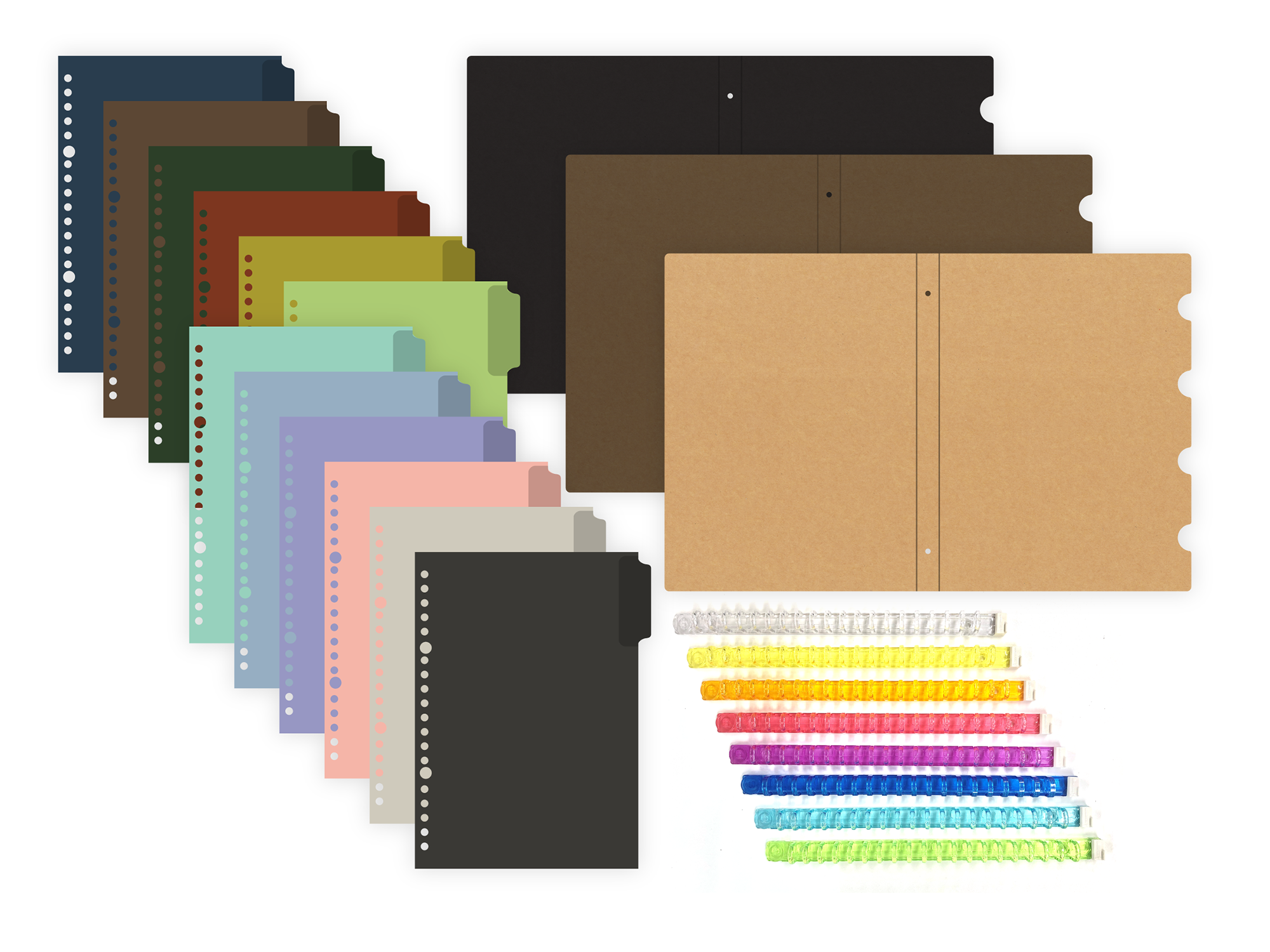 表紙や金具、中身のアクセサリーを選んでオリジナルのバインダーが作れます。300通り以上の好きな組み合わせが楽しめます。