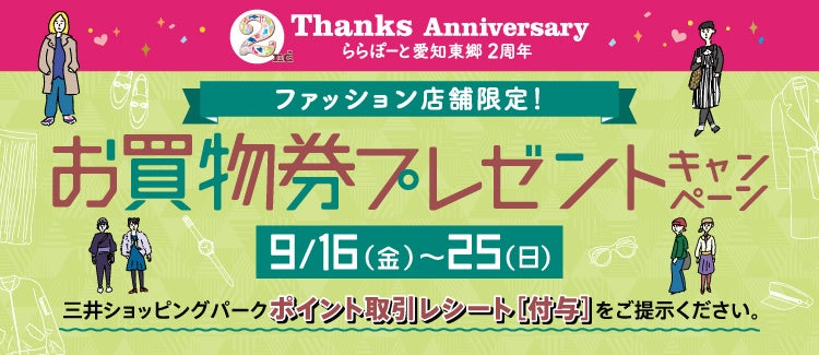 【 三井ショッピングパーク ららぽーと愛知東郷 】2周年を迎えたららぽーと愛知東郷から“感謝” を伝える特別な期間!2nd Thanks Anniversary