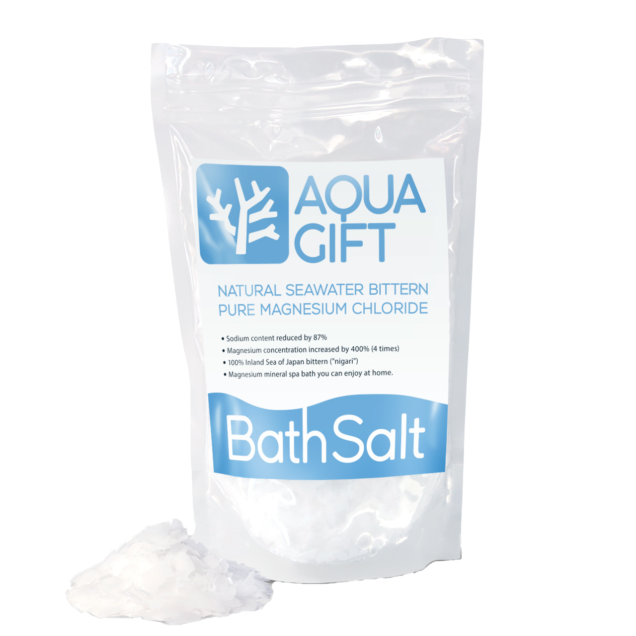 専門機関にて証明済み:マグネシウム含有量1,1600mg、天然成分のみで作られたバスソルト「AQUAGIFT(アクアギフト)」