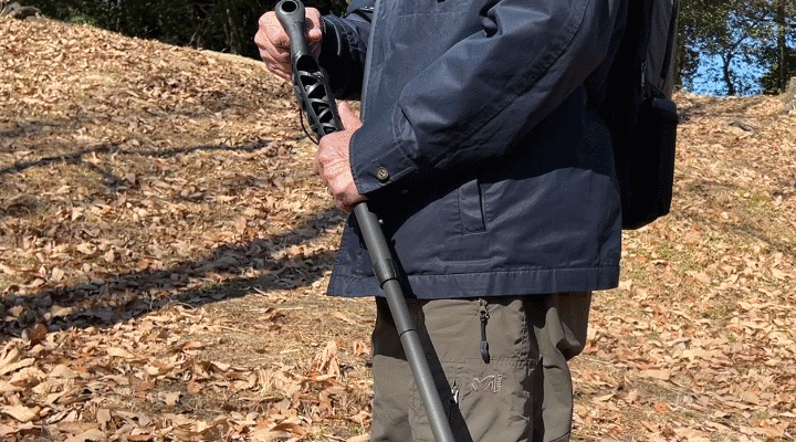 場所も取らず、ワンタッチでウォーキングステッキと椅子を切り替え可能。