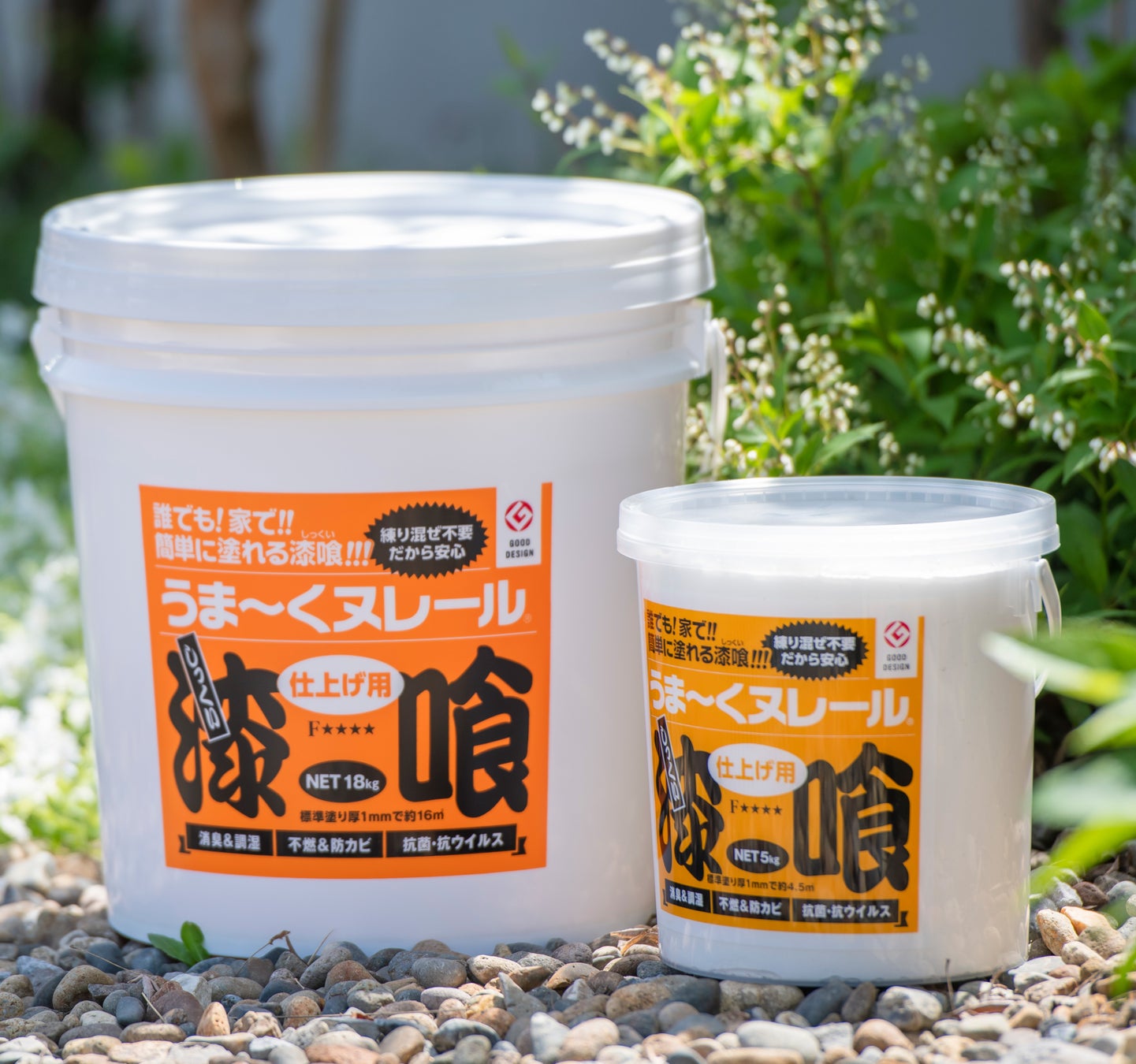 | 重量・価格(税込) | 18kg(缶)15,235円 5kg(缶) 4,785円 700g(チューブタイプ)1,980円 ※下塗り用・仕上げ用 各サイズともに同価格 |