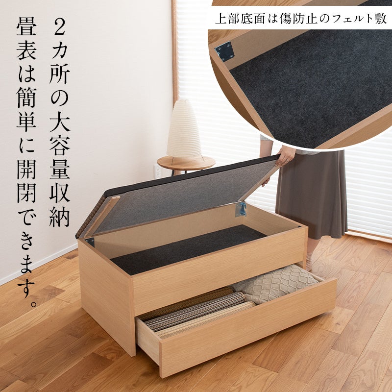 畳の下が収納スペースになっています。畳のみで交換が可能なので、永くお使いいただけます。