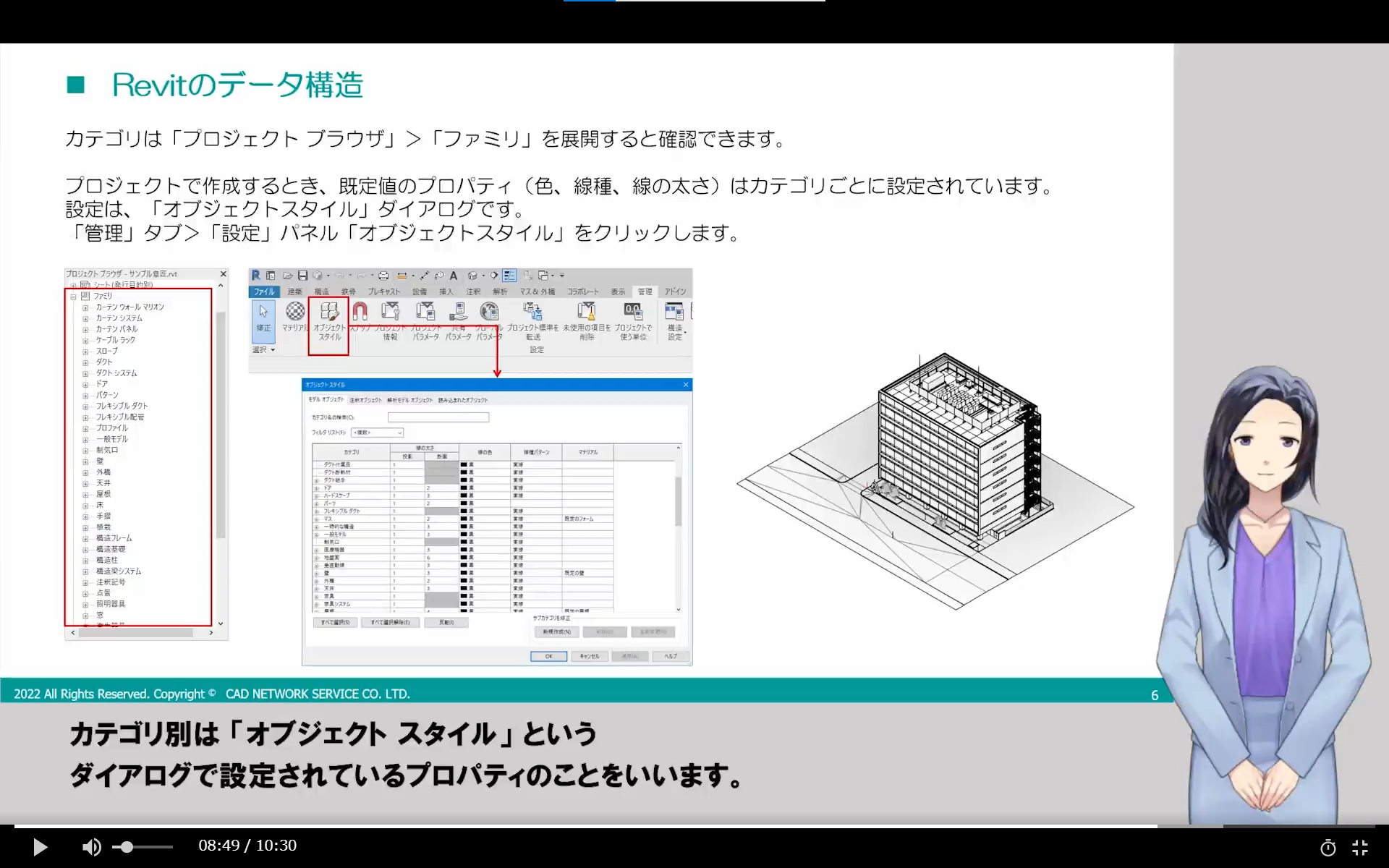 BIMNET eラーニングは、在宅勤務でもオフィス勤務でも、自身のタイミングで何度でも見直しすることが可能です。細かく項目ごとチャプターに分けて収録しているので、初期の技術習得だけでなく、実務の中で見直したい項目をすぐ確認し、技術の習熟度を高めます。