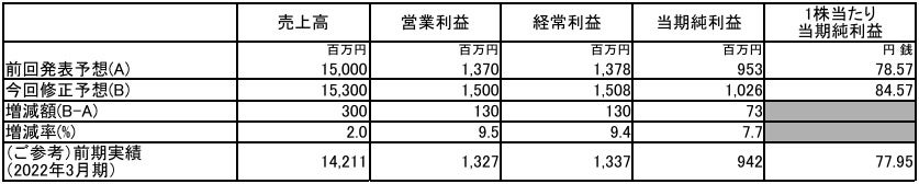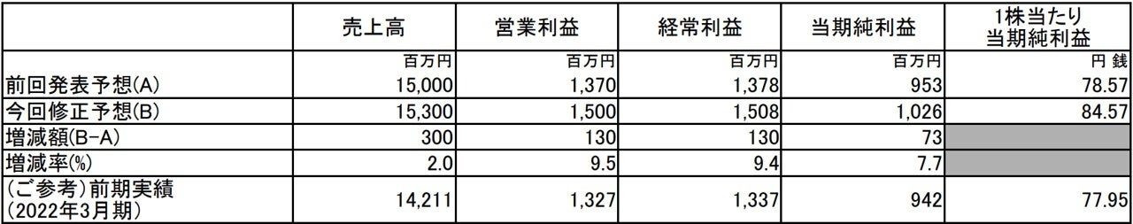 ⑴ 2023年3月期通期個別業績予想数値の修正(2022年4月1日~2023年3月31日)