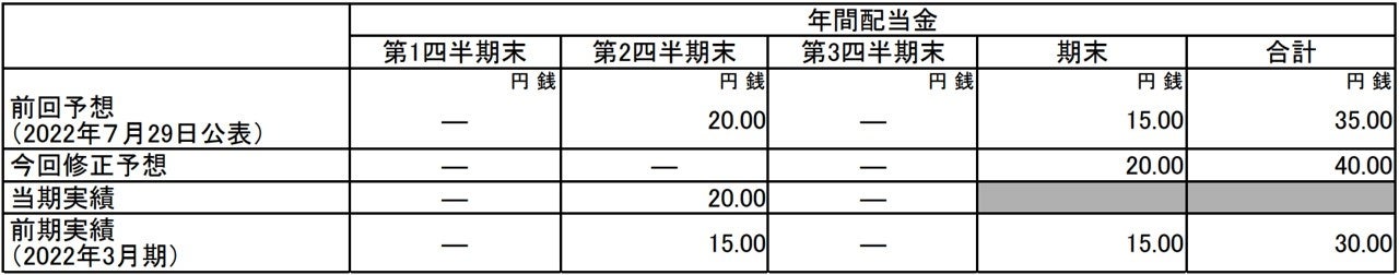 これにより、2023年3月期の1株当たり期末配当金は20円となり、年間配当予想は1株当たり40円、