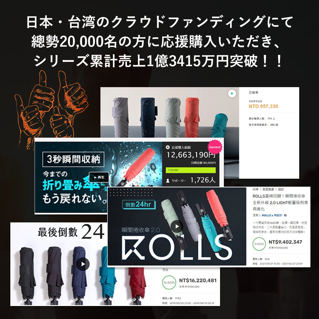【公開15分で⽬標達成!】シリーズ売上1億3千万円超!『ROLLS AUTO折りたたみ傘』が⽇本に初上陸!傘の不満を進化に変えた一本。Makuakeにて先⾏予約受付中。