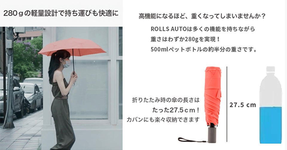 極はっ水&形状記憶「ROLLS AUTO折りたたみ傘」が10⽉17⽇(月)20時よりMakuakeで先⾏予約開始。