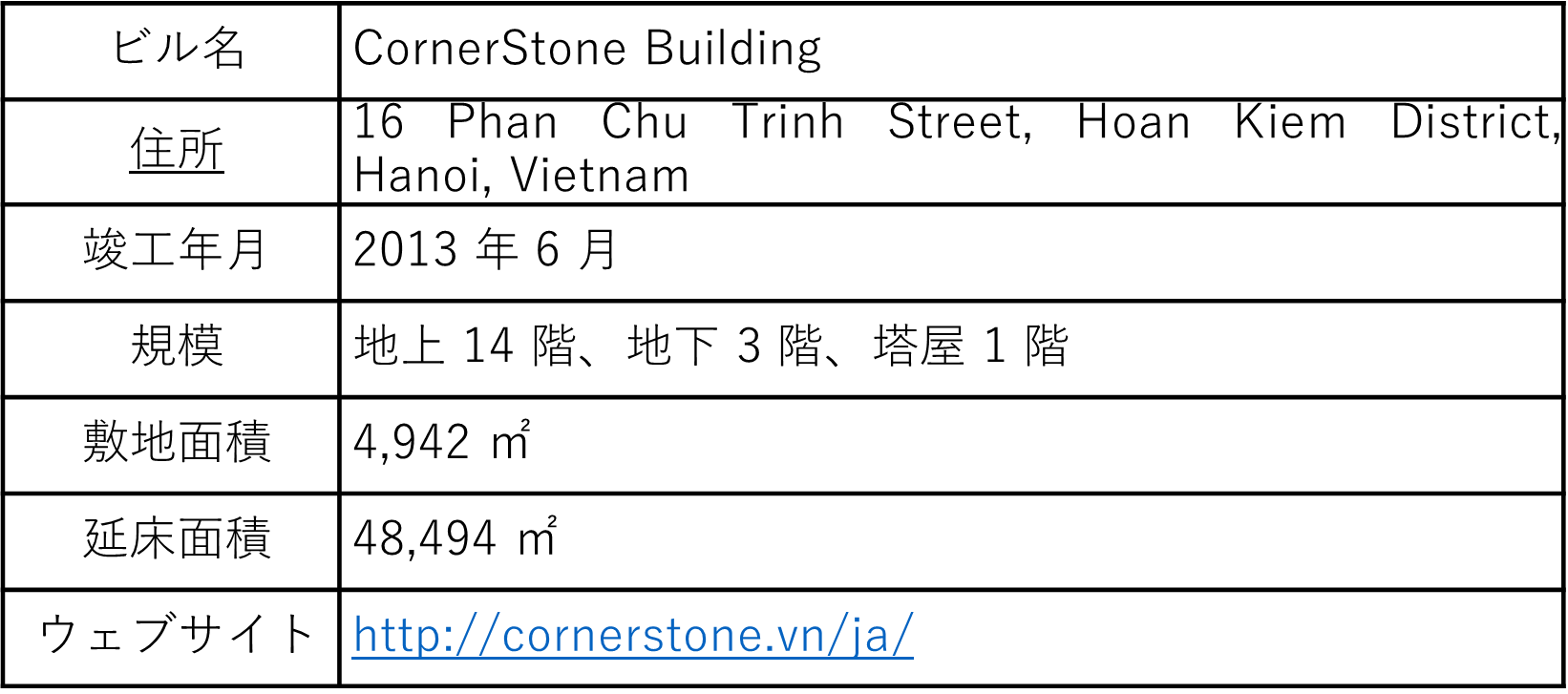 ベトナム ハノイ市「コーナーストーン・ビルディング」における太陽光発電の導入について(ハノイ市内Aグレード賃貸オフィスビル初*)