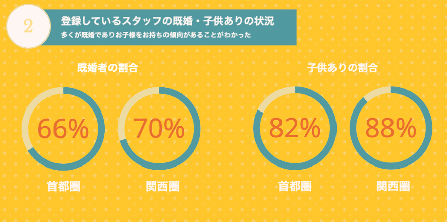 - 登録者の多くが既婚であり子供をお持ちの傾向があることがわかった