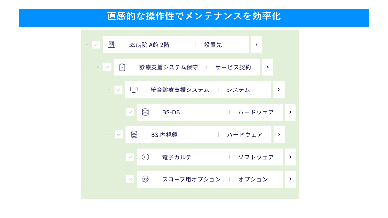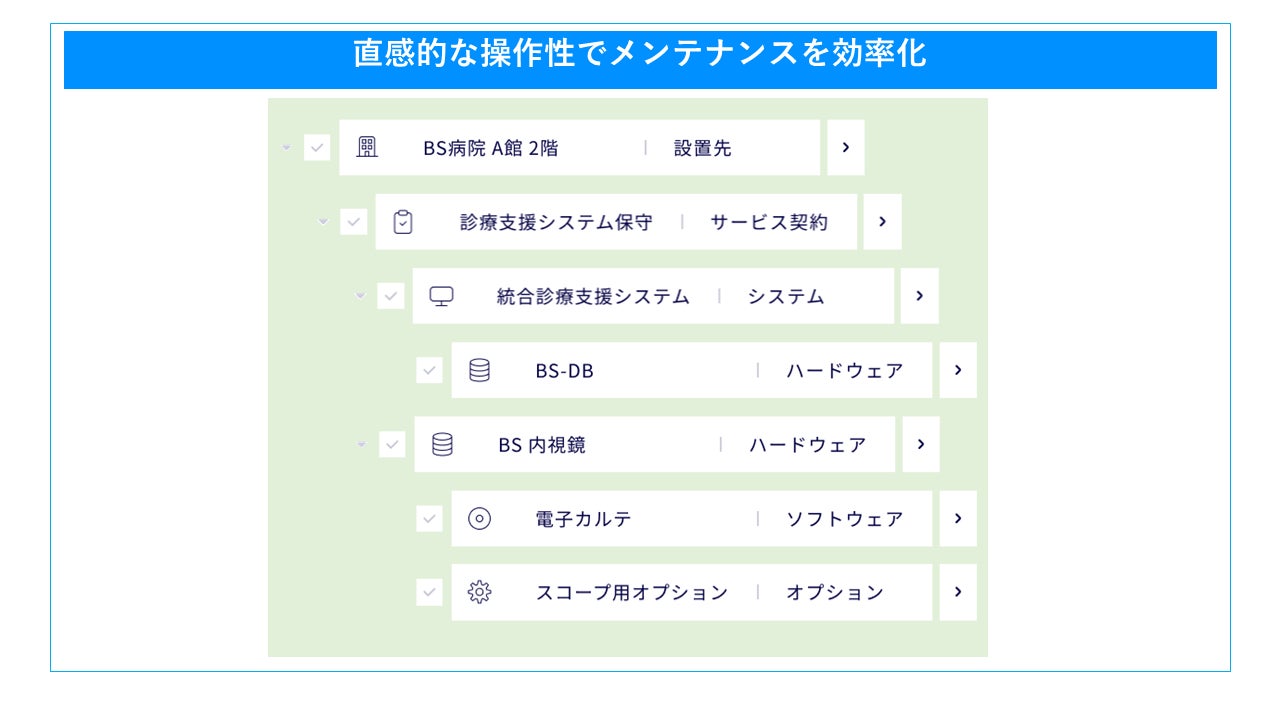 構成管理システム「Blue Sheep」の導入により、医療機器事業領域で扱う商品ごとに大きく異なる、機器やサービスの構成情報やライセンス情報などをモデル化し、構成管理プロセスを標準化したほか、医療機関へ富士フイルムメディカルの価値を最大限に提供すべくITIL準拠のプロセスも同時に実現しました。