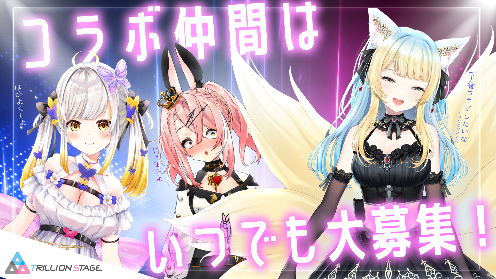 TRILLIONSTAGE(トリリオンステージ)は、Vtuber様・クリエイター様・企業様を問わず、積極的に様々なコラボを募集しています。
