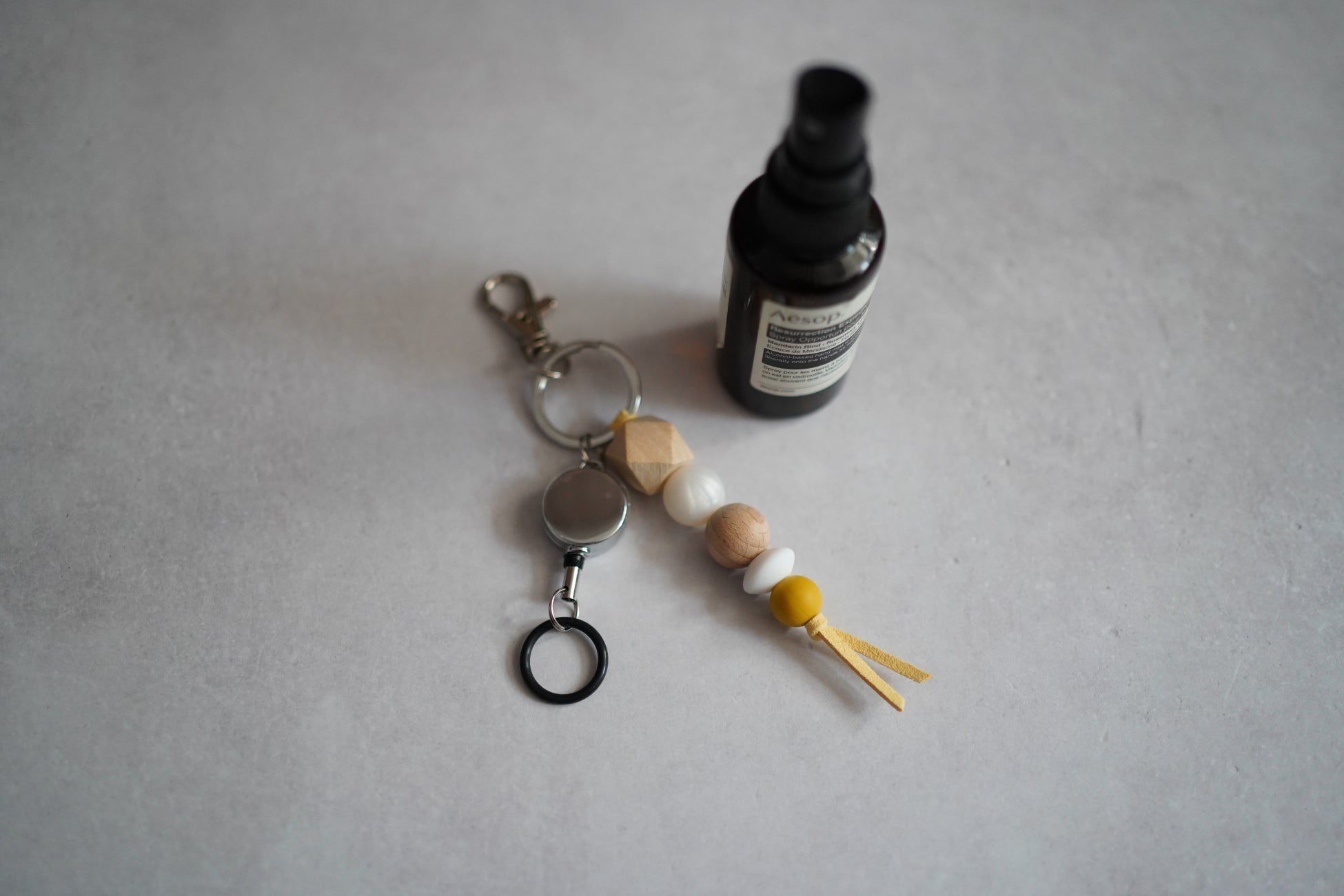 アルコールスプレーや鍵を付けたりマルチな使い方が出来るキーリング。