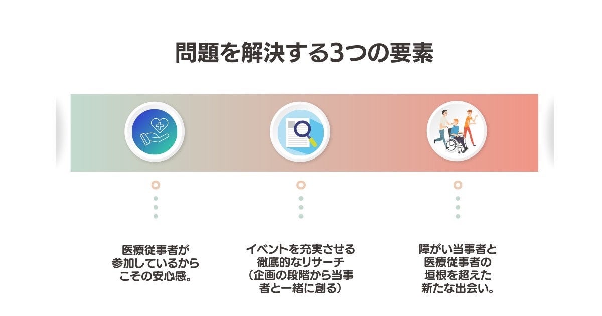 メンバーには理学療法士・作業療法士・看護師・介護福祉士など、医療・介護のプロフェッショナルが参加し、1人でも多くの人が楽しめるイベントを参加者全員で創りあげます。