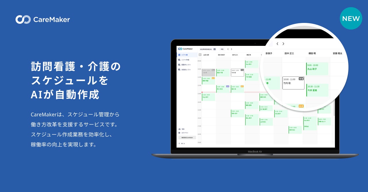 在宅医療・介護業界の省力化・効率化に取り組む株式会社CareMaker(東京都渋谷区 代表:山村 真稔 以下、CareMaker)は、これまで訪問看護・介護向けAIによる訪問スケジュール自動作成サービスを提供してきましたが、2022年9月より、作成のみならずその後の管理に必要な日々の調整を含む操作性を兼ね備えた訪問スケジュール管理クラウド「CareMaker(ケアメーカー)」として大幅にアップデートしたことをお知らせします。