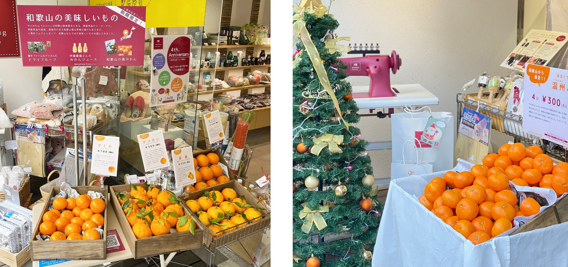 定期イベントとして、毎月第2土曜日・日曜日に和歌山県産の季節のフルーツや食品などを販売する【和歌山マルシェ】を開催!和歌山にあるメーカーとして、和歌山のおいしい食べ物や魅力を知ってほしいとの思いから、2022年12月にスタートしました。「次回はいつするの?」「すごくおいしかったのでまた買いにきました。」とお客様よりご好評いただいております。日によっては土曜日で売り切れてしまいます。