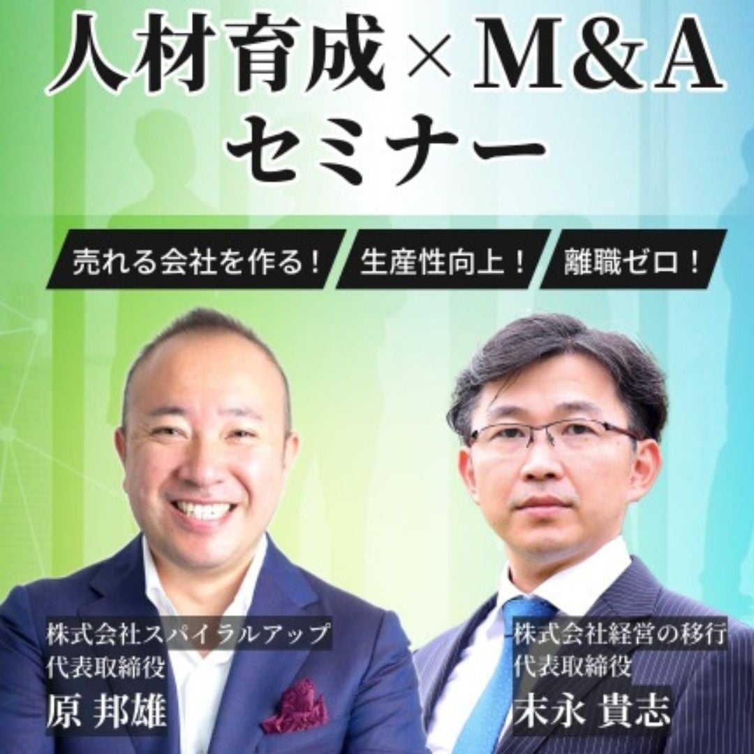 売れる会社の条件のひとつに、教育体制が整い売上があがる仕組みが出来ている「安定した事業基盤」が挙げられます。今回は、従業員の長所を伸ばし"金銭的価値"に換える人材育成『ほめ育』を世界に広げる原氏に、人材育成を通じた会社の企業価値の高め方をお伺いします。また、M&A・IPO支援を手掛ける株式会社経営の移行 代表の末永より、自身のEXIT経験を交えて会社を高く売るための方法について講演いたします。対談では「人材育成×M&A」といったテーマで、これまでにない切り口で将来的な会社売却を目指されるオーナー社長へ向けたメッセージにご期待ください。