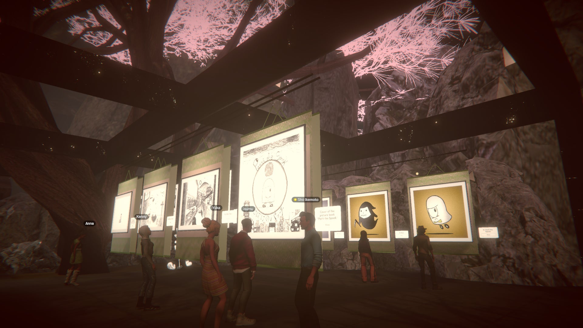 スタジオパッチは、オフィスとなるメタバース空間を制作しました。代表の池本とスタッフが集合して打ち合わせをしたり、ファンを呼んで交流できる空間として活躍しています。