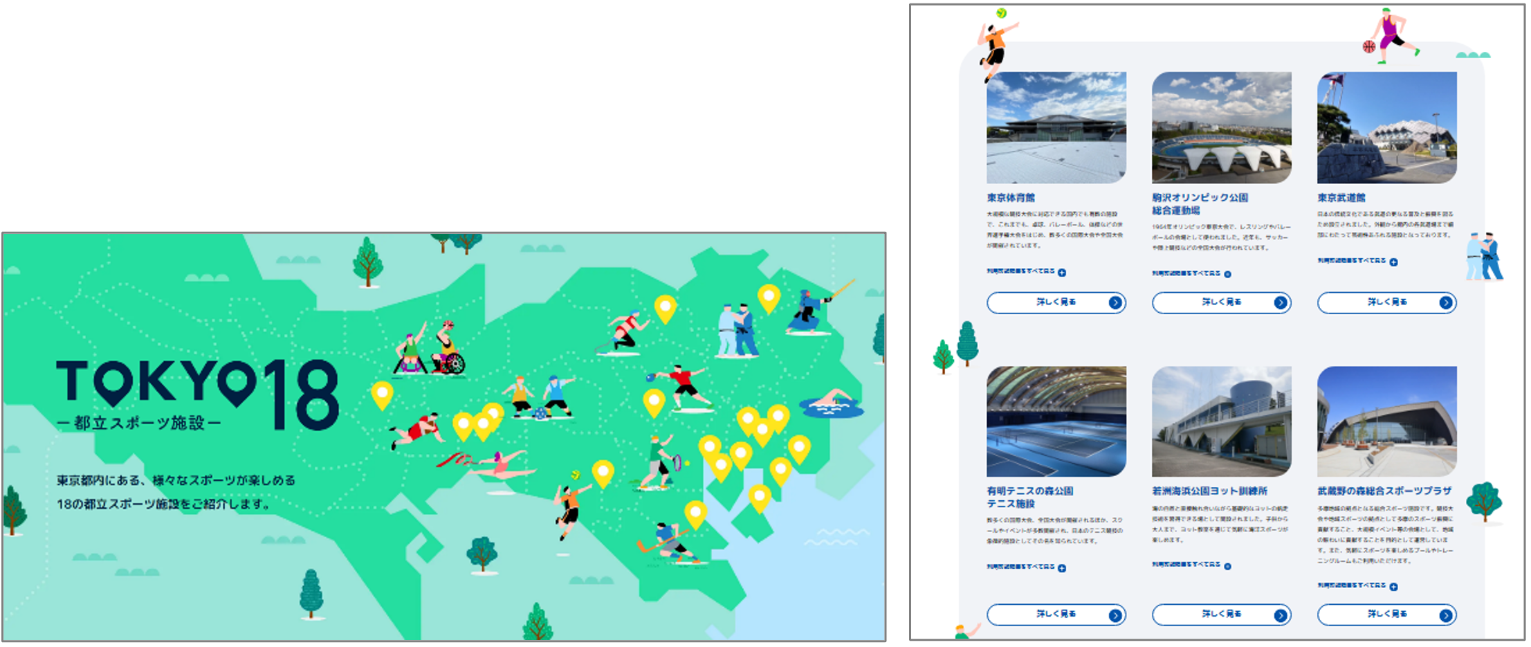都立スポーツ施設の利用を積極的に促すため、特集ページにて東京体育館・東京アクアティクスセンターなど都内18箇所のスポーツ施設を紹介します。