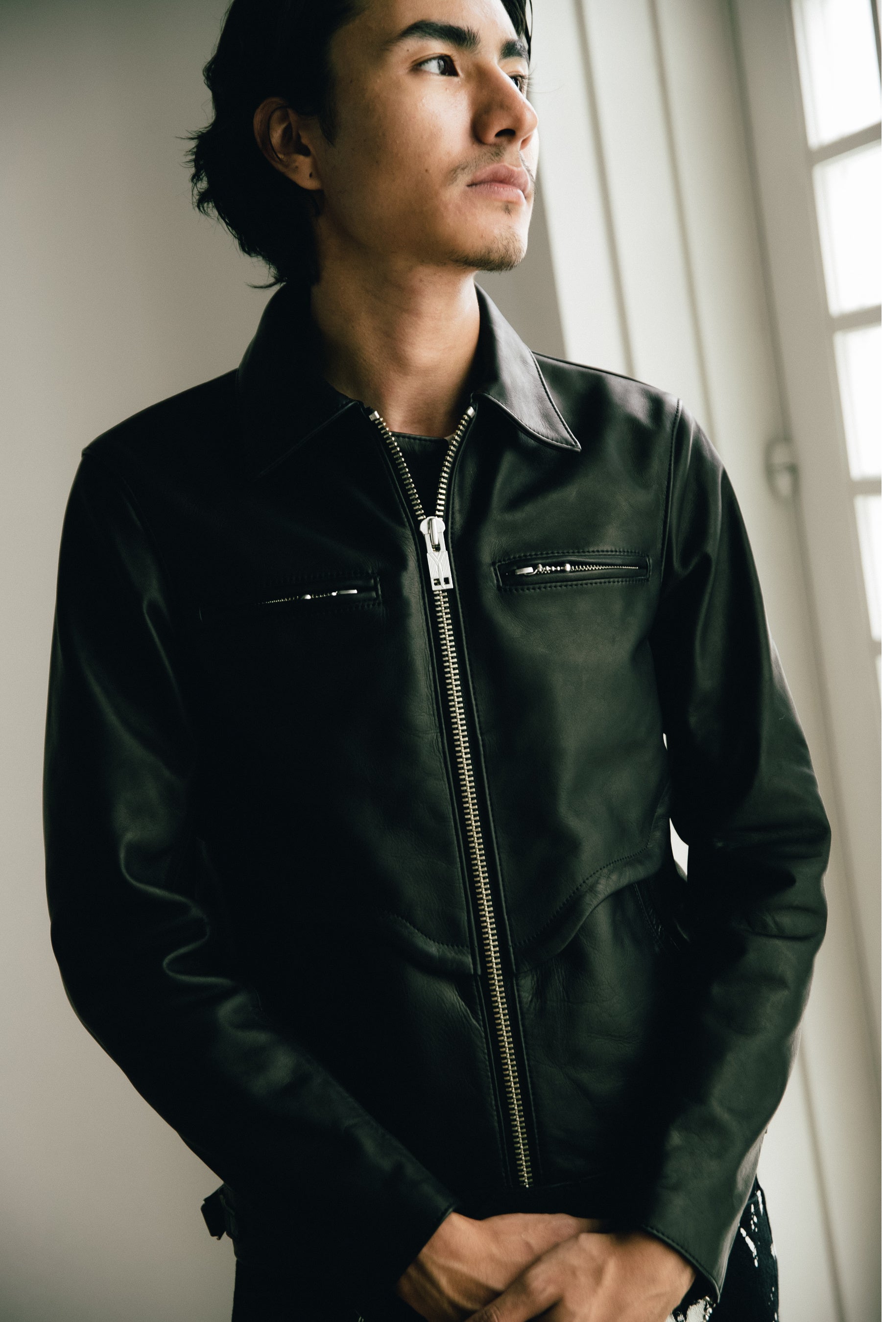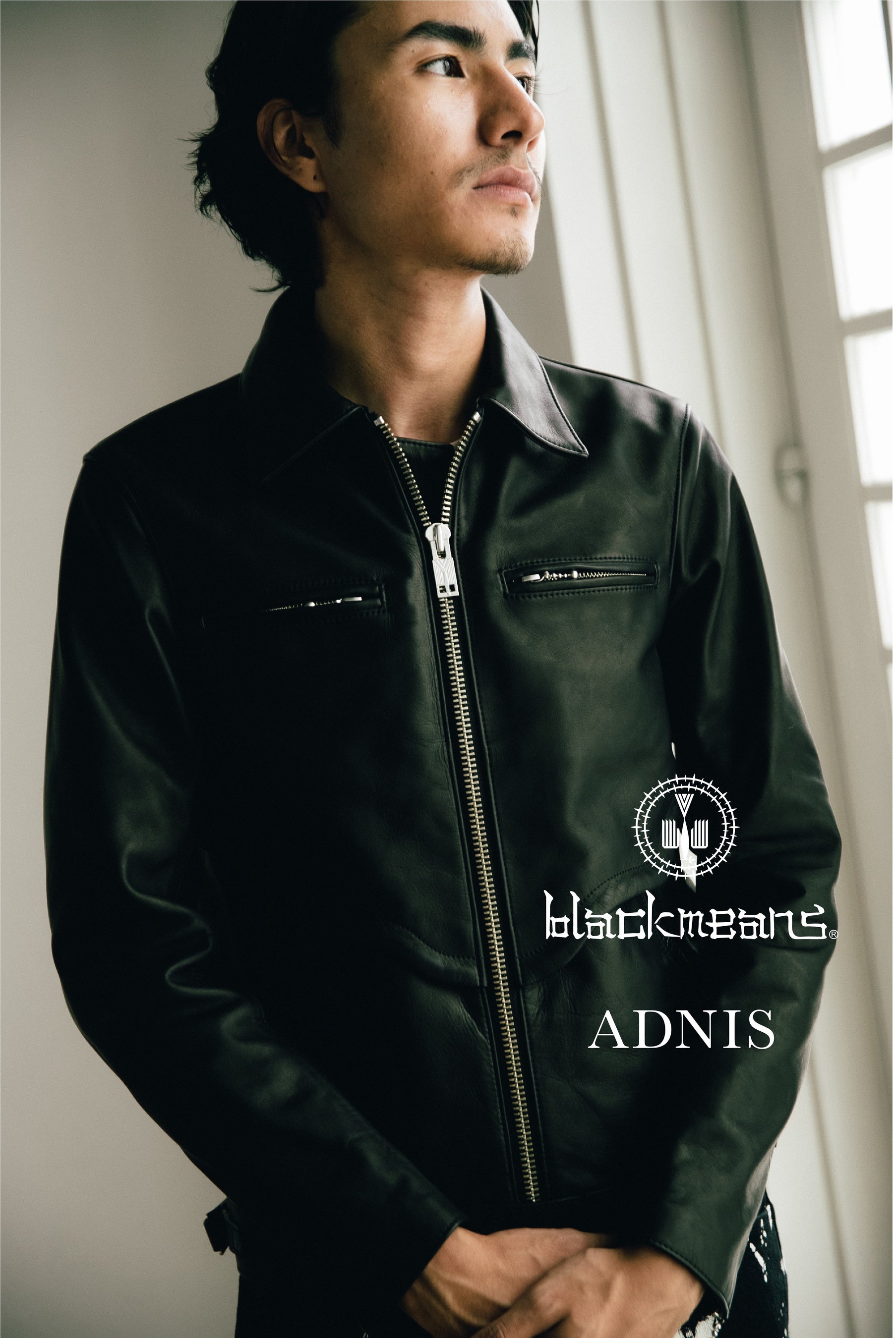 blackmeansとは、オイルマットのカウレザーを使用したシングルライダースジャ ケットを制作。blackmeansのシグネチャーアイテムにADNISのエッセンスを加え たオーソドックスながら一癖あるアイテムに仕上がっている。