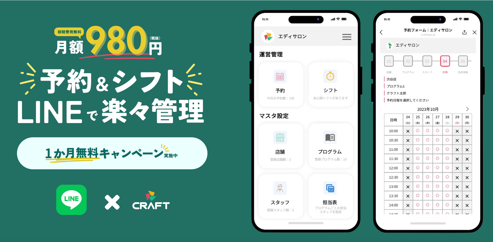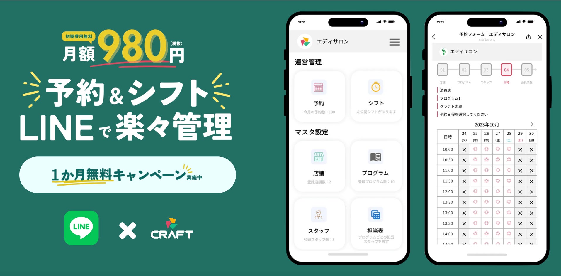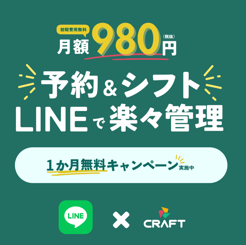【業界最安水準】LINE予約管理システム「CRAFT」のサービス提供開始のお知らせ