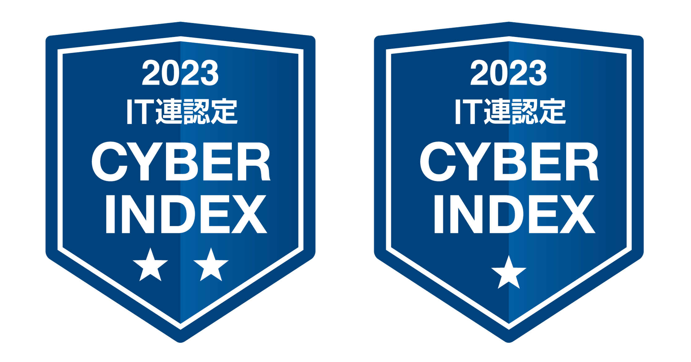 調査の結果、優れた取組姿勢および情報開示を確認できた企業58社 に対し、「日本IT団体連盟サイバーインデックス企業調査2023」として、 星を付与する「格付け」を行いました。またその中で特に優れた取組姿 勢および情報開示を継続的に確認できた企業14社には、二つ星を認定 しました。