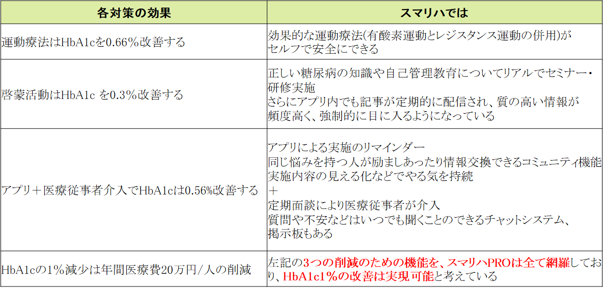 糖尿病改善プログラムにおいては、プログラム実施によりHbA1cを1%改善可能というデータが証明されております。
