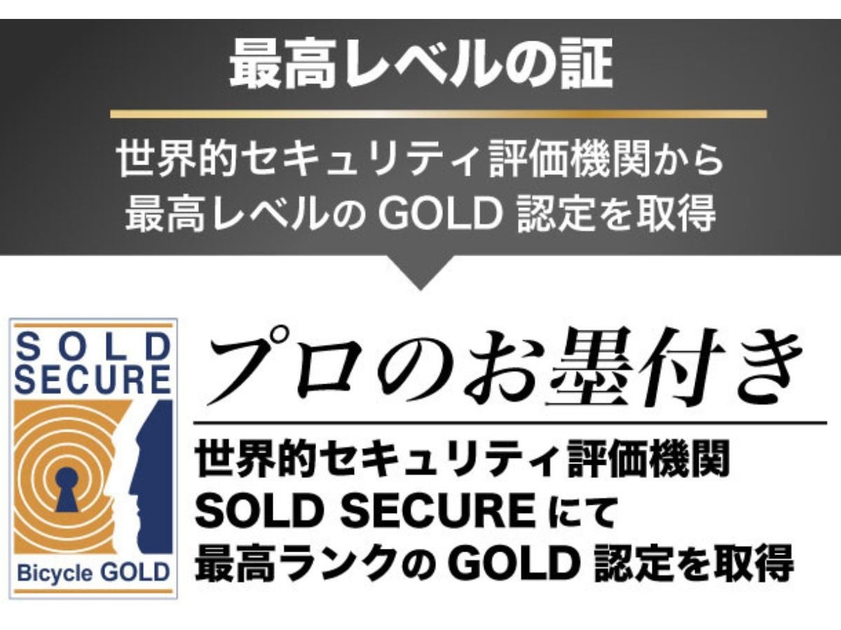 (※)Sold Secureはイギリスの会社であり、セキュリティ製品テストの業界標準を保持する独立したセキュリティ製品認証機関。製品の安全性をゴールド、シルバー、ブロンズの三段階で評価します。