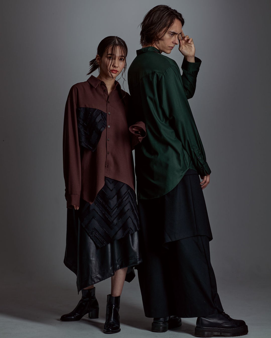 Mizuidならではのアシンメトリーな動きのあるデザインはそのままに、男女問わずそれぞれの着こなしをお楽しみいただけるシャープでエレガントなスタイルを提案します。