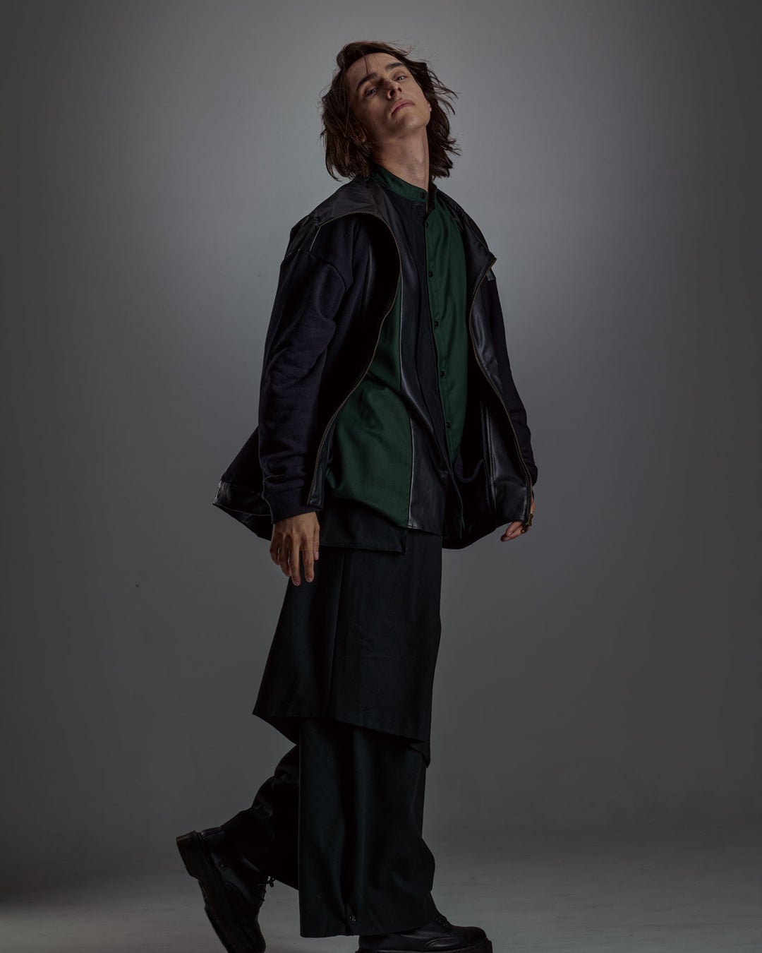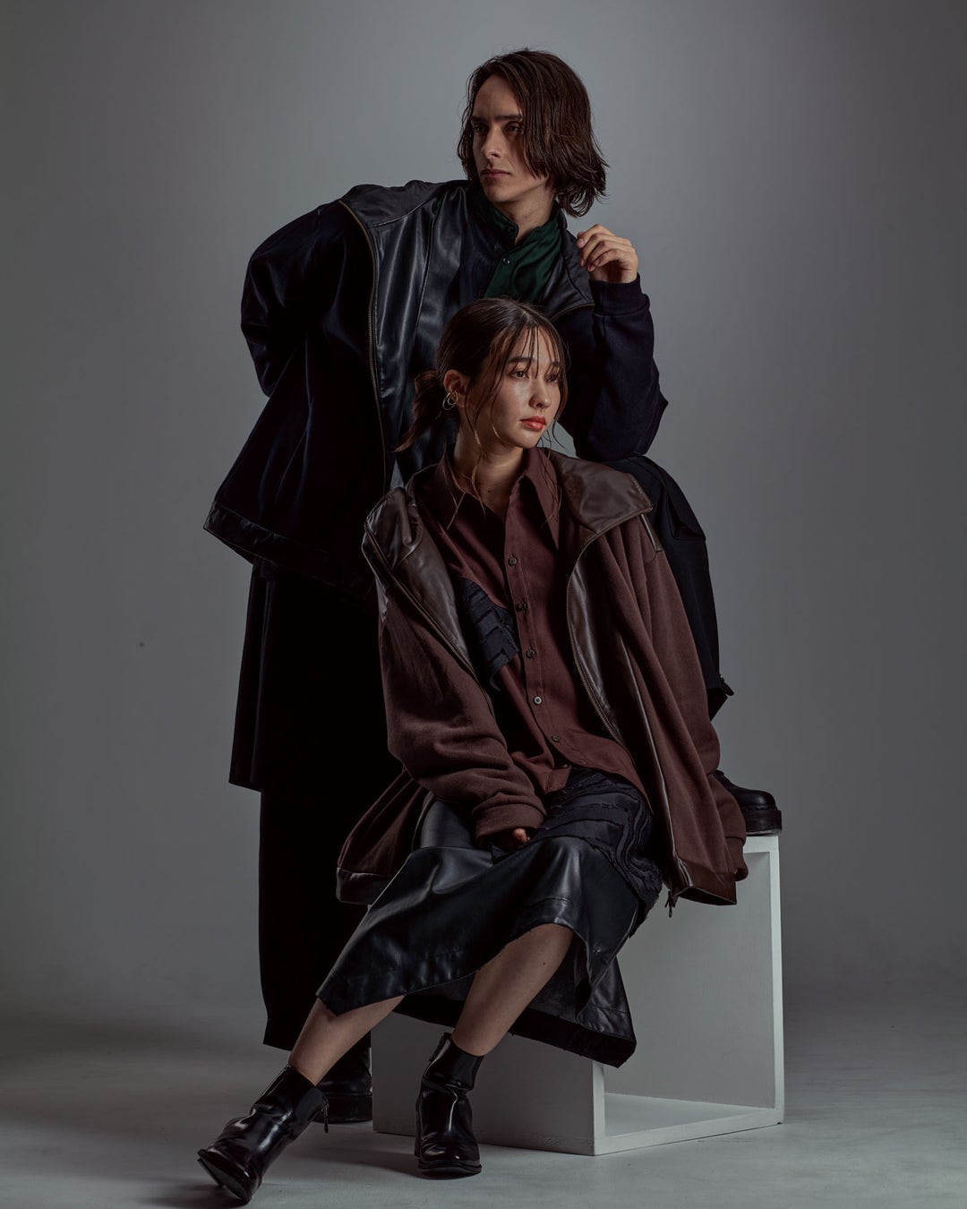 ブランドローンチより3シーズン目となる本コレクションでは、ブラック/ブラウン/グリーンを基調とし、フェイクレザーやジャカードをアクセントにしたアイテムを展開。