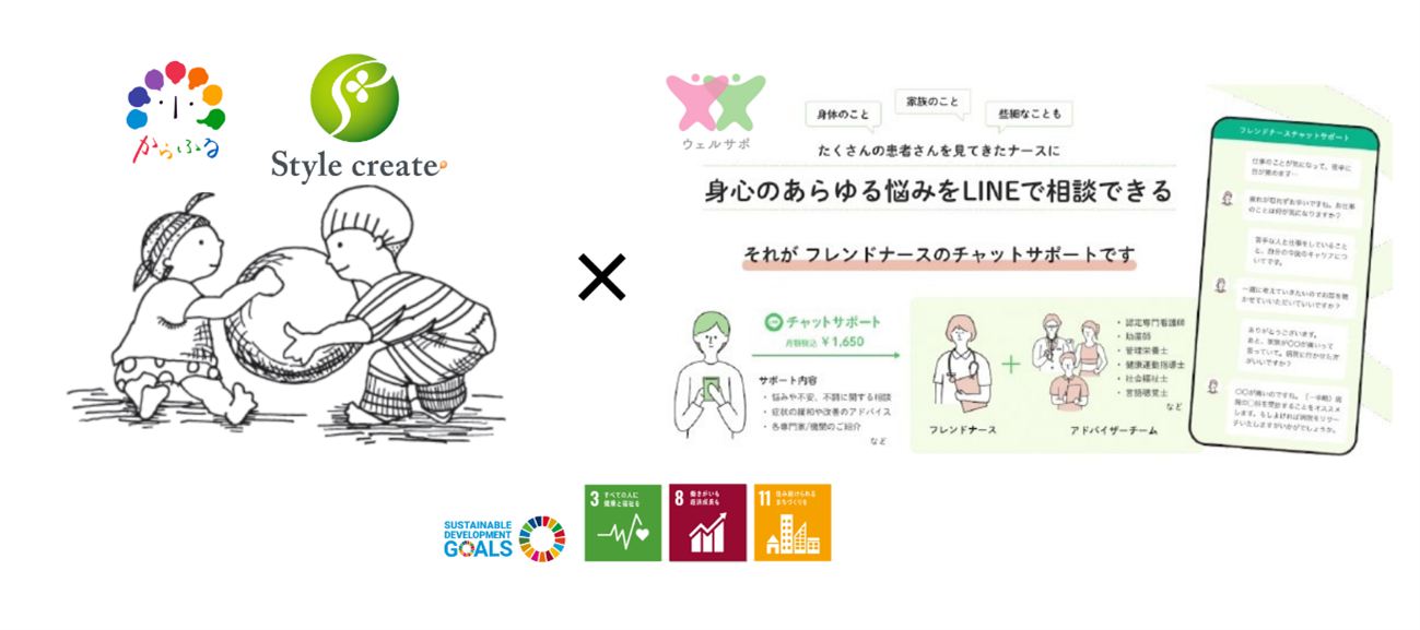 一般財団法人ウェルネスサポートLab(所在地:福岡県福岡市、代表理事:笠 淑美、以下「ウェルサポ」)は、エッセンシャルワーカーである保育士が「健康的に持続的に働くためのヘルスケアサポート」を弊団体のフレンドナースサービスを基軸として、スタイルクリエイト株式会社(所在地:福岡県福岡市、代表取締役:麻生 有花)と協働で開始いたしました。