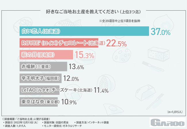 株式会社GAROO(本社所在地:東京都渋谷区、代表取締役:荒木 美千代)は、全国の男女を対象に、「ご当地お土産」に関する調査を実施しました。