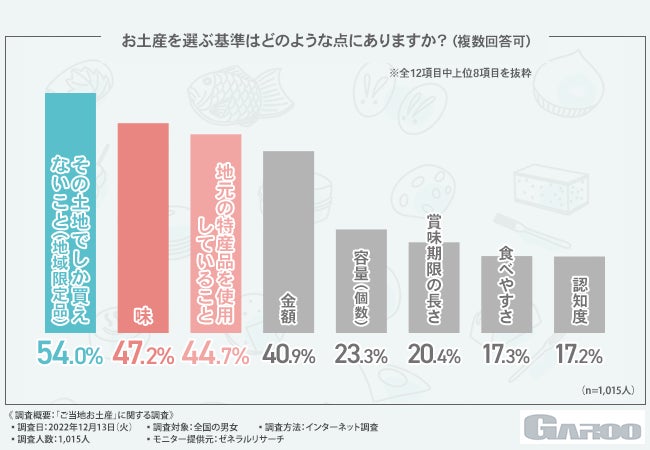 - 【お土産を選ぶ基準】最も重視されているのは地域限定品であること!