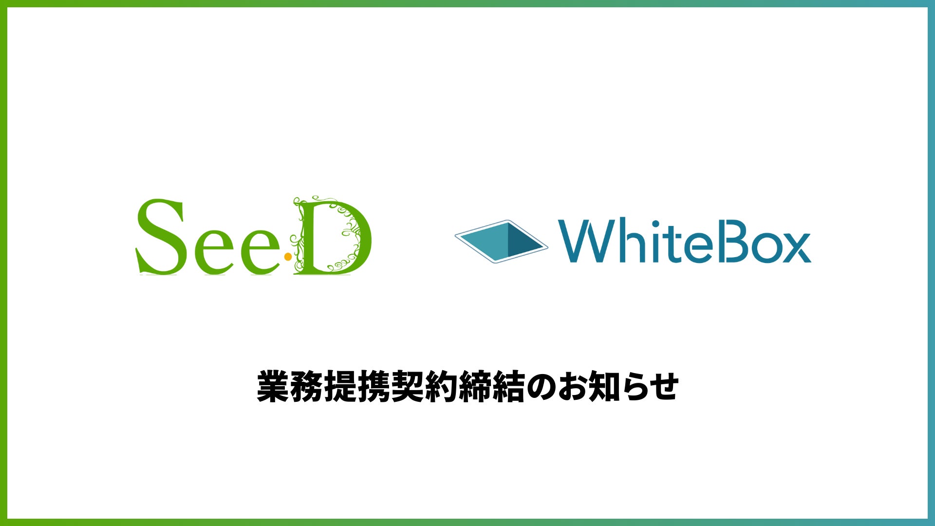 株式会社SeeD(本社:東京都港区、代表取締役社長:高橋 俊介、以下「SeeD」)は、株式会社WhiteBox(本社:東京都渋谷区、代表取締役:川原 翔太)と業務提携契約を締結いたしました。