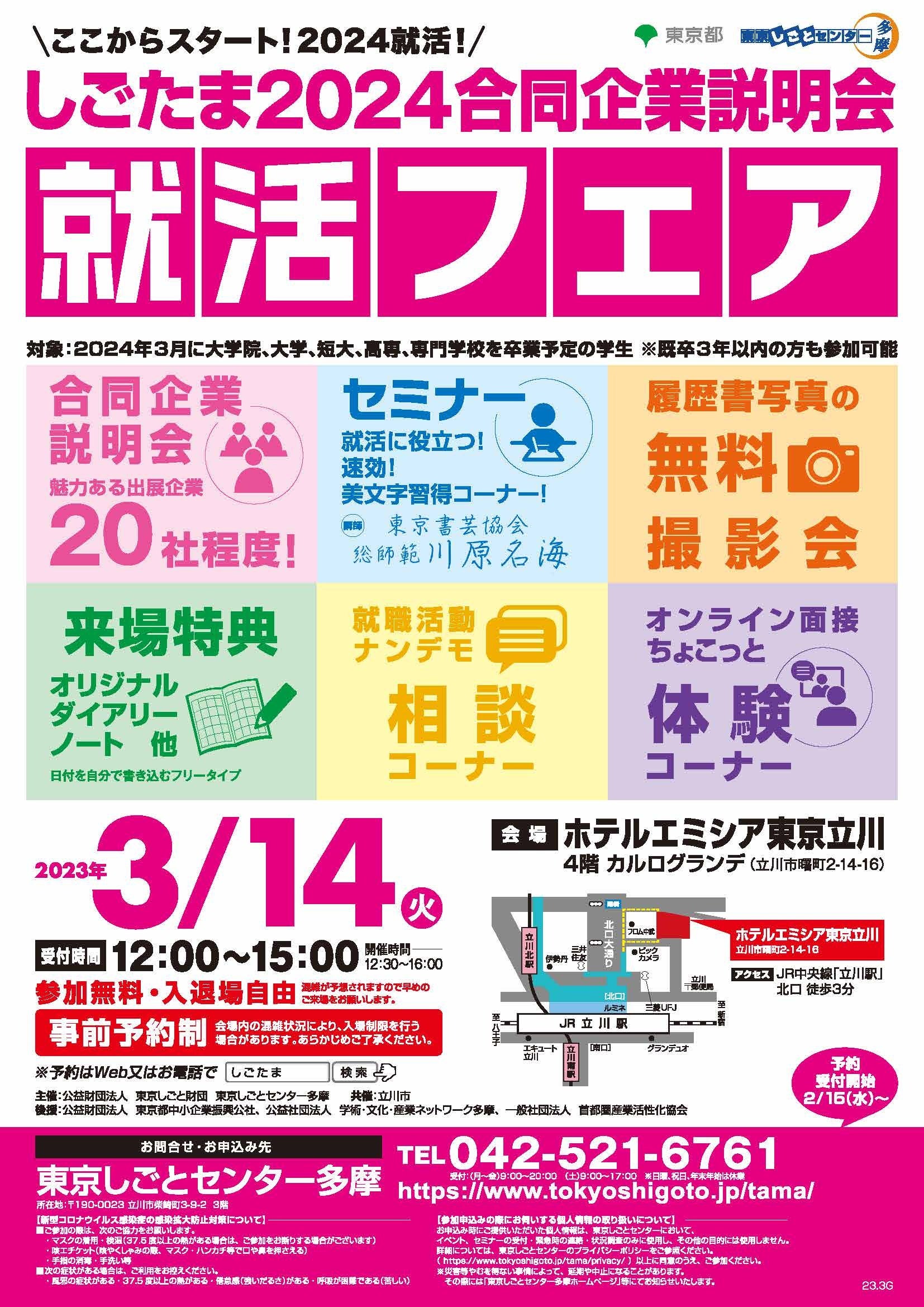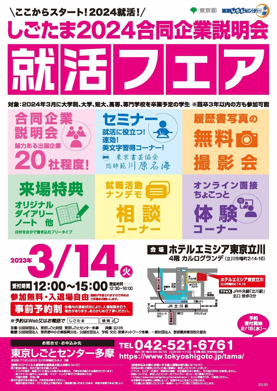 24卒の就活スタート!しごたま2024合同企業説明会を3/14、立川にて開催!
