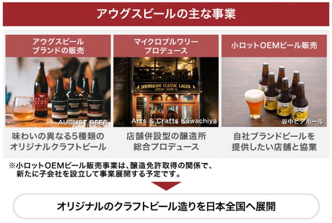 ・事業内容: 無ろ過生ビール「アウグスビール」の製造・販売、およびクラフトビール製造の支援・プロデュース