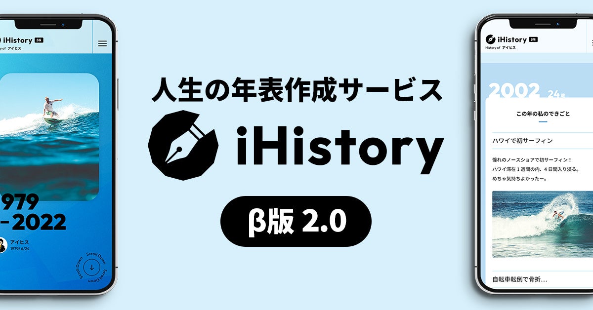iHistoryは、2022年8月にβ版をリリースされた、じぶんや家族の人生をかんたんに年表にできる個人向けSaaS(Software as a Service)サービスです。