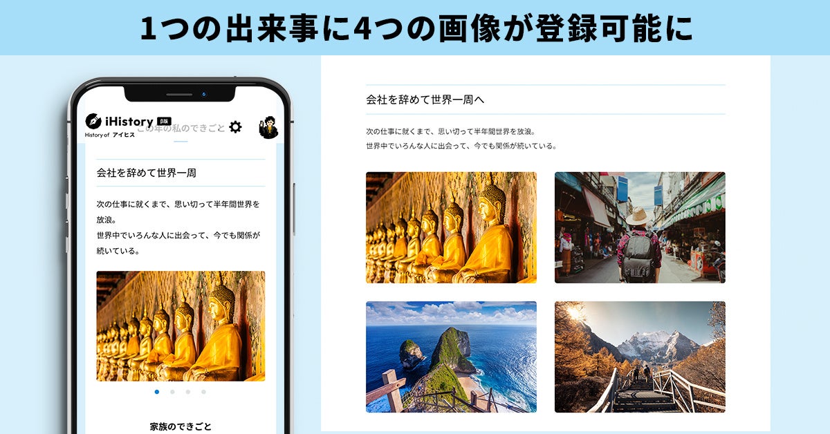 2.1つの出来事に挿入できる写真・画像の枚数上限を4枚に増加