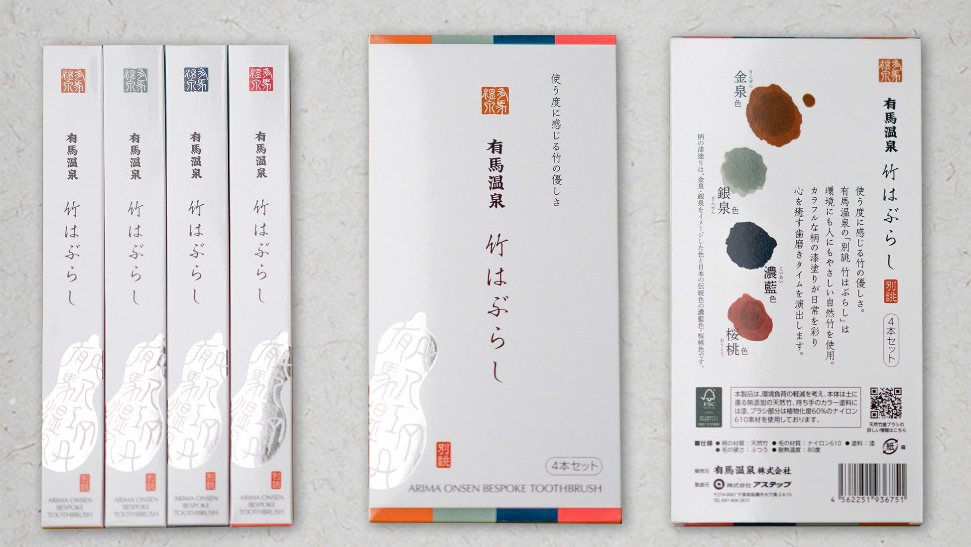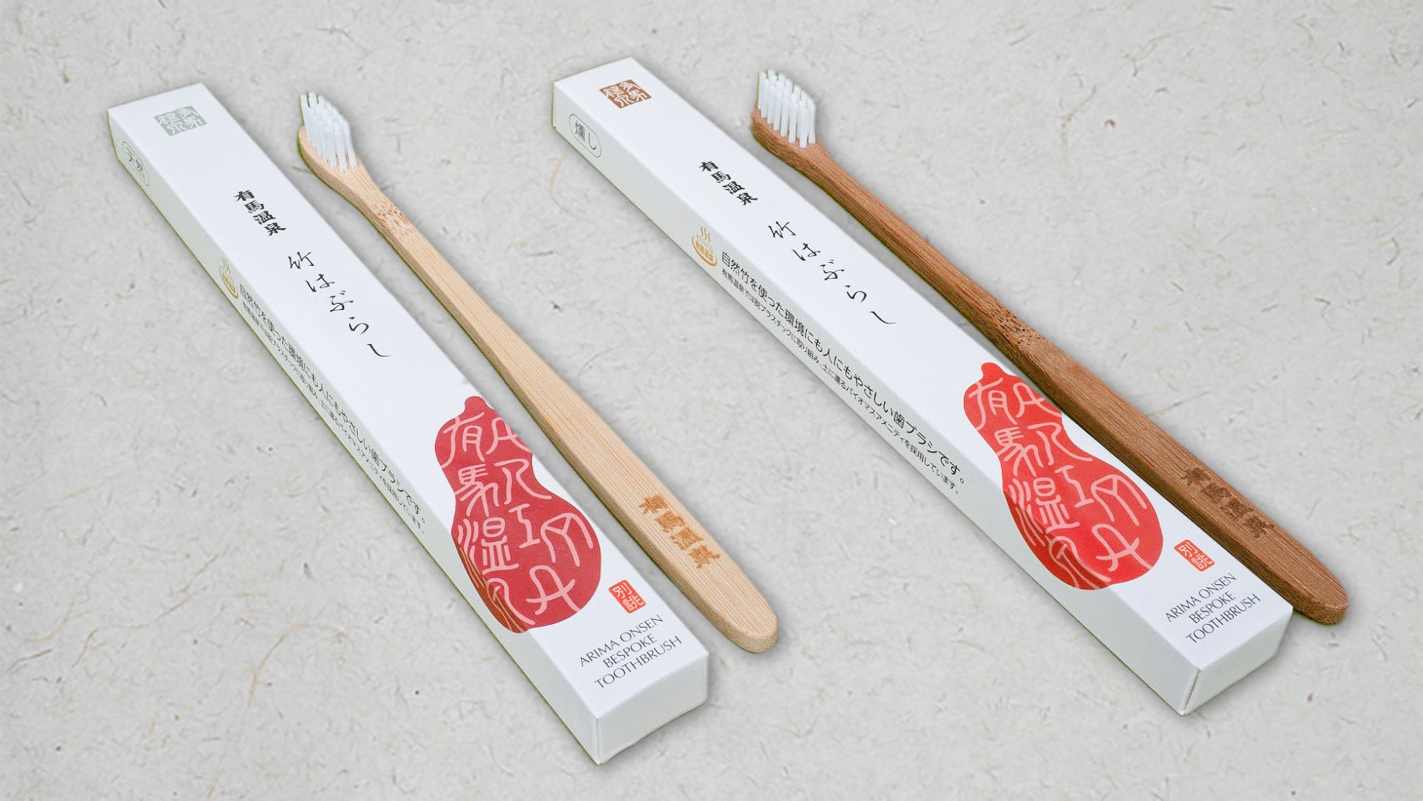 ①有馬温泉旅館協同組合で竹歯ブラシアメニティの地域共通デザインを制作